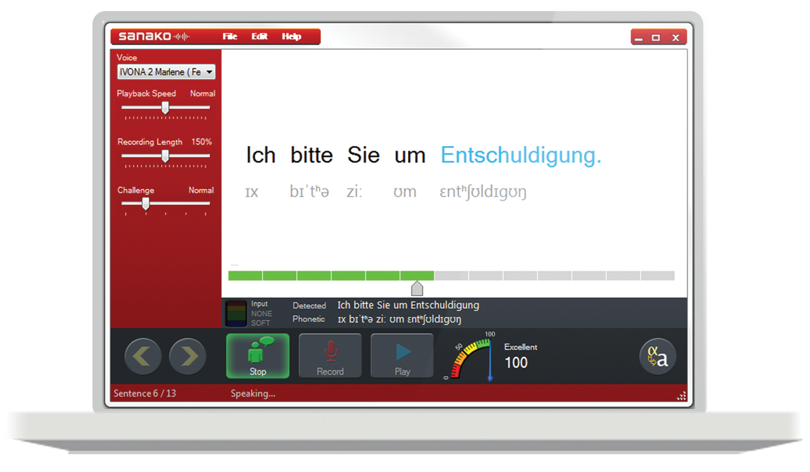 Sanako Pronounce è un software innovativo, che utilizza le più avanzate tecnologie “text-to-speech”. Direttamente dal proprio Pc sarà possibile ascoltare la corretta pronuncia madrelingua, registrare la propria voce per confrontarla e ricevere un riscontro immediato e automatico, il tutto utilizzando un unico software. Qualsiasi testo può essere inserito in Sanako Pronounce per sentirne la corretta pronuncia in alta qualità, inoltre è possibile selezionare diverse voci madrelingua (sono separatamente disponibili tutte le maggiori lingue) per confrontare vari accenti e pronunce. Sanako Pronounce è un supporto indispensabile per migliorare la propria pronuncia in modo facile e veloce.
